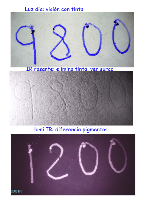 Para conseguir éxito en su trabajo y determinar las conclusiones de sus informes periciales lo más exactamente posible, la perita calígrafa utiliza en multitud de ocasiones la visión con tinta que demuestra que «las cosas no son como inicialmente parecen«. En este caso, la cantidad que en un principio parecía 9.800, Vercher terminó demostrando gracias a sus pruebas que era un 1.200 tras eliminar la tinta y ver los surcos para así diferenciar los pigmentos de los números trazados sobre el papel.