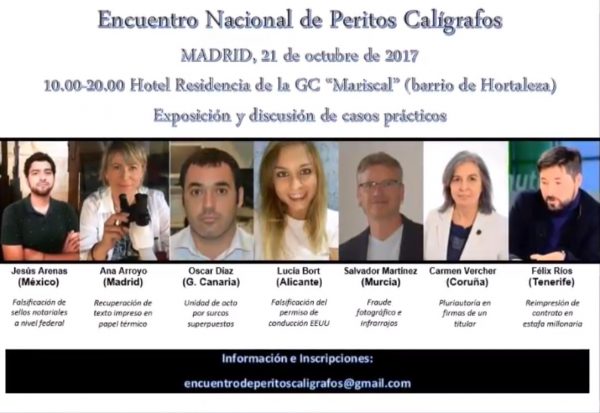 Primer Encuentro Nacional de Peritos Calígrafos en Madrid, 21 de Octubre de 2017